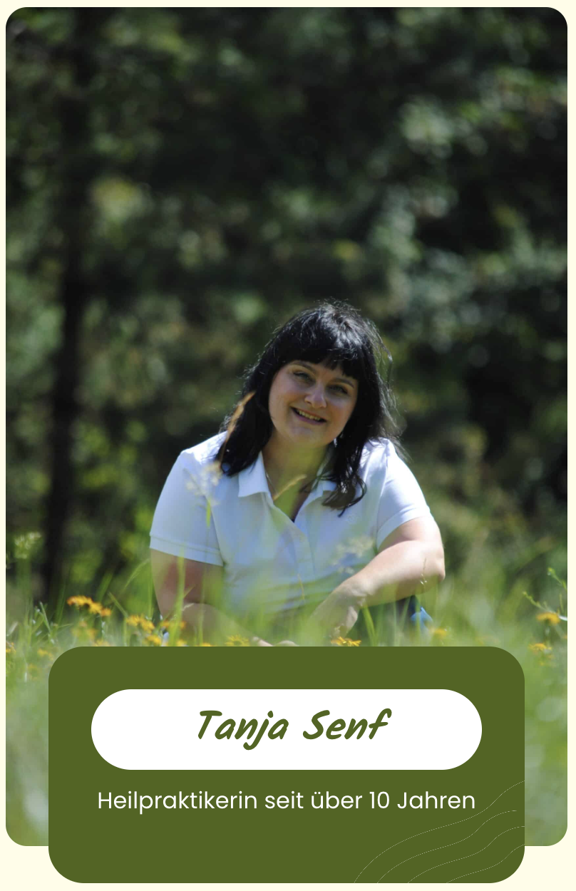 Hallo, ich heiße Tanja Senf und bin seit über 10 Jahren mit Leidenschaft als Heilpraktikerin tätig. Seit 2023 arbeite ich selbstständig in meiner eigenen Praxis.